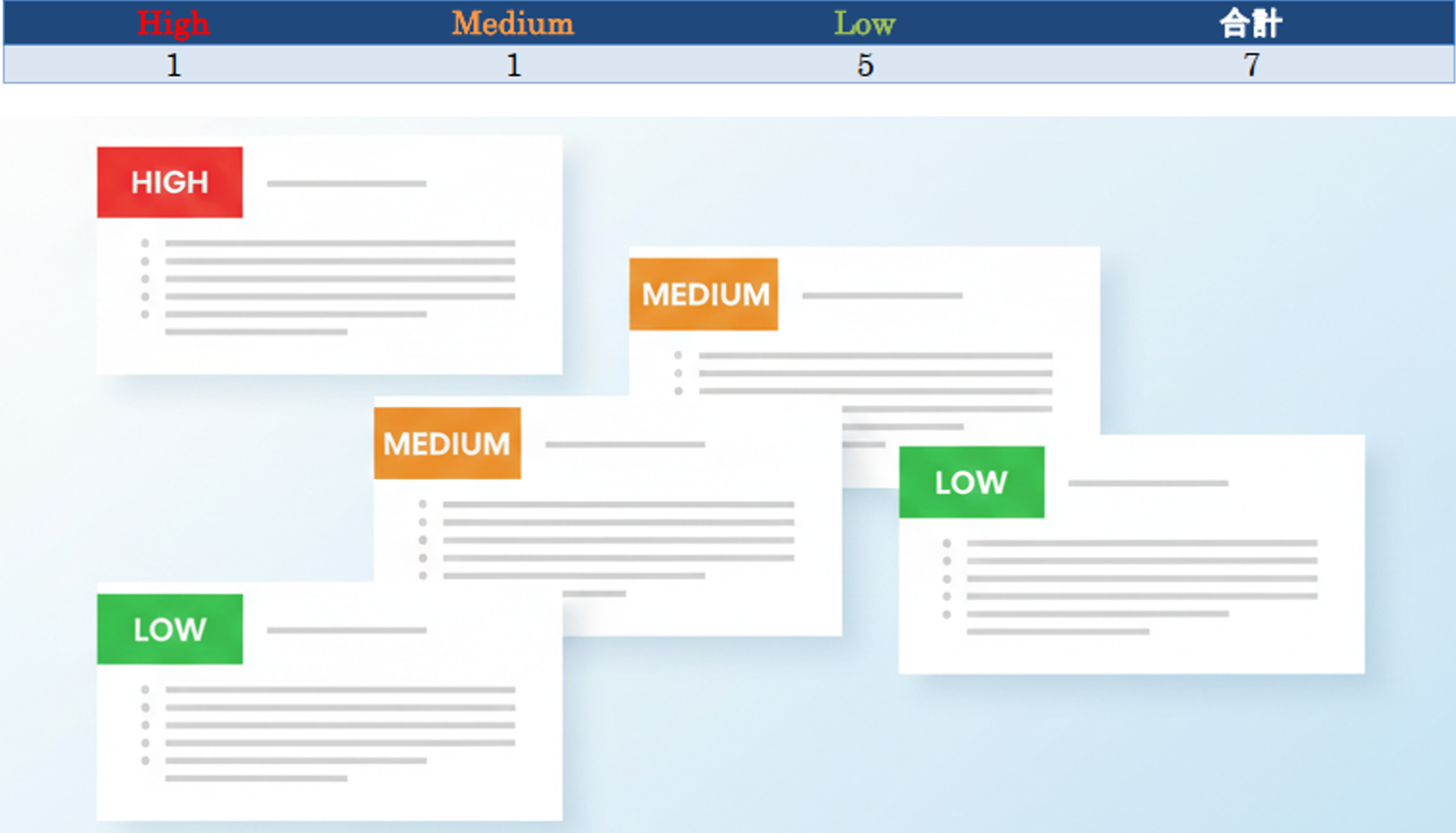 貴社の独自構成を16の項目で徹底分析。深刻度に応じたリスクの根拠から、具体的な改善手順までを網羅した報告書をご提供します。