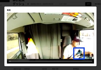【高精度AI解析】 商業車両の映像に特化したAIが、携帯、居眠り、シートベルトなど11種類の違反を検知。低画質・多様な画角にも対応し、事故の予兆となる危険行動を徹底的に洗い出します。