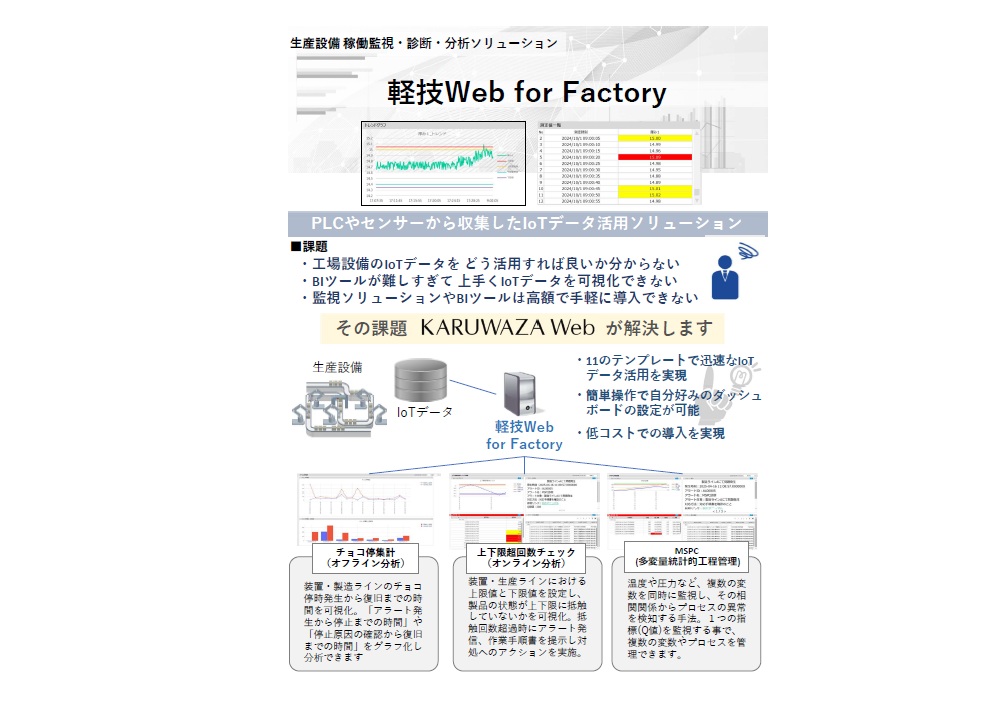 軽技Web for Factoryは、工場で日々蓄積される大量のデータを、誰でも簡単に「検索」して「分析」できるツールです。