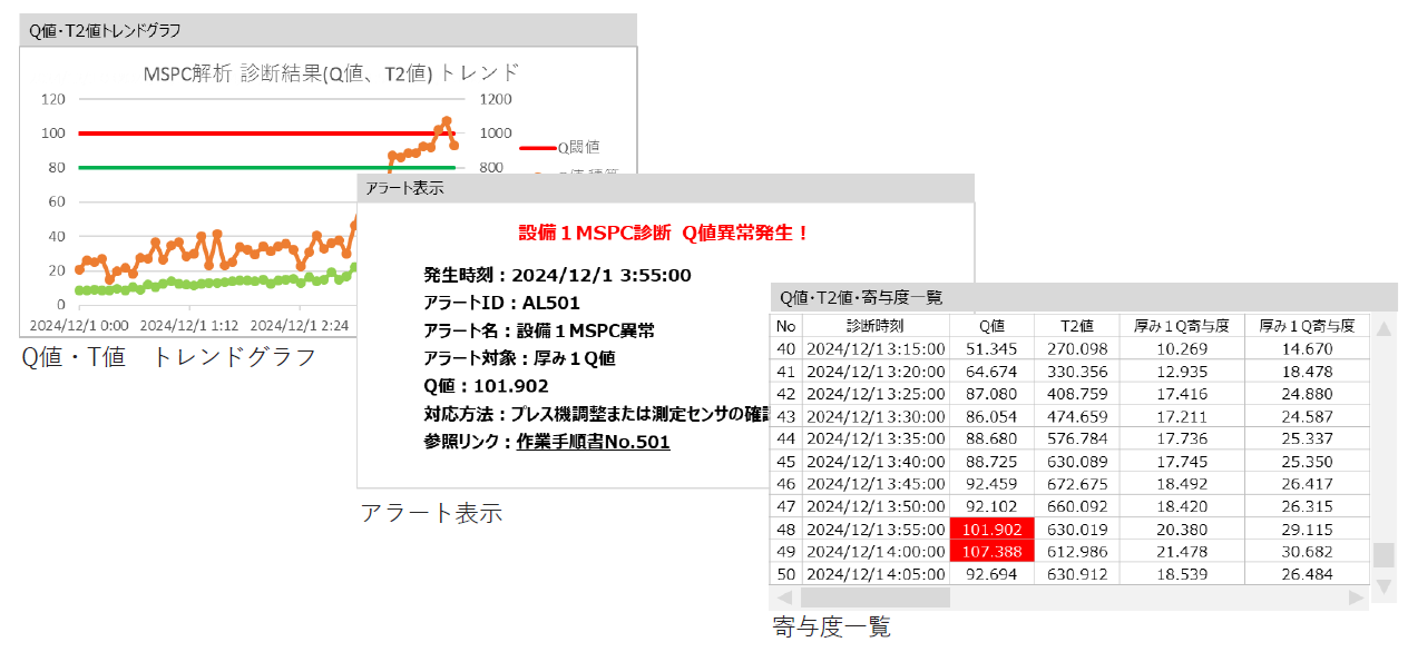 過去の良品データと不良品データを比較分析し、数値では捉えられなかったわずかな差を明確に把握。AIによる診断機能(MSPC診断)を活用すれば、ベテランの経験則に基づいた故障の予兆を自動で検知し、未然防止につなげられます。
