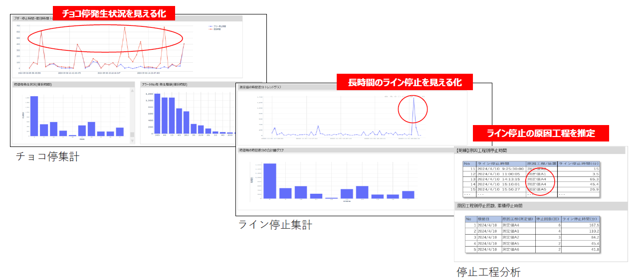 「不良品が多く発生している時間帯」や「特定の作業員の不良率」をリアルタイムにグラフで可視化したり、過去の検査データと現在のデータを比較して品質の傾向を自動分析したり。さらに、手作業でやっていた日次・週次レポート作成もボタン一つで完了。